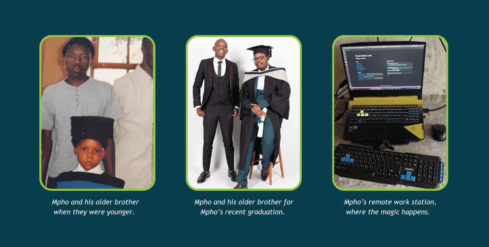 Another interesting dynamic in Mpho’s transition from CodeTribe to his current role is working remotely. “Yoh! This one requires discipline, I watch my time these days and sometimes my friend comes to hang out during work hours and I would have to remind him that I am actually working but from home”, he laughed.